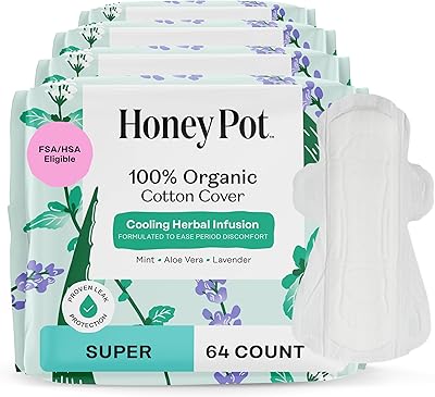 The Honey Pot Company - 64ct - Herbal Pads for Women - Super wWings - Infused wEssential Oils for Cooling Effect, Organic Cotton Cover, Ultra-Absorbent Pulp Core - Feminine Care
