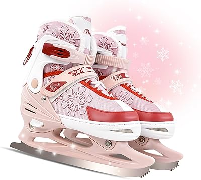Kids Ice Skates for Boys Girls Stainless Steel Blades Adjustable Red Iceskates Ages 3-12 Skating Shoes Outdoor Men and Women Rink Pink